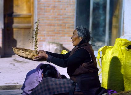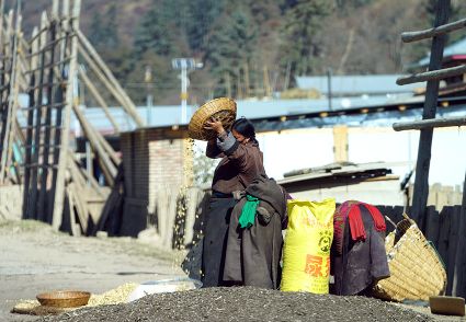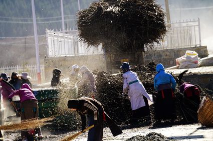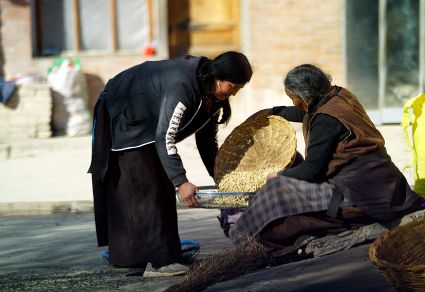 我想,擁有了清新質(zhì)樸的鄉(xiāng)野日子,就可以靜下心來(lái)。而事實(shí)上還是無(wú)法安下心來(lái),一面想著山林的神秘,一面想著城市的熱鬧。寂寞無(wú)聲地穿過(guò)巷道,那個(gè)向陰的小二樓一如既往地昏暗。拉開(kāi)麻布的窗簾,大多時(shí)候我會(huì)看見(jiàn)走在巷道里的老老少少、男男女女,他們背著柴禾,滿帶笑容,相互致意。他們的日子似乎充滿了無(wú)盡的樂(lè)趣,也充滿了幸福和陽(yáng)光。上午十點(diǎn)的時(shí)候,陽(yáng)光會(huì)滑過(guò)窗臺(tái),轉(zhuǎn)瞬即逝,但陽(yáng)光的確向小二樓袒露了它的無(wú)能為力。另一張桌子擺放著廚具,廚具上每天都會(huì)有新的灰塵堆積,盡管如此,它們依然發(fā)出青稞的馥郁之氣。