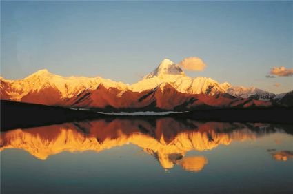 在倒影的映襯下,貢嘎這時似乎就是天宮中的圣域,閃閃發(fā)光的金色提醒著凡人,那里是神的領(lǐng)域。