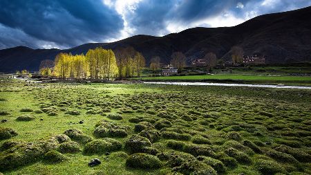 湛藍的天空下,雄鷹在盤旋,牛羊在安詳?shù)芈匠圆?,靜靜的小河在山邊蜿蜒流淌,充滿綠意的白楊樹在風中搖曳,藏式民居不時升起縷縷炊煙,寂靜、空曠的原野深處偶爾會傳來幾聲狗叫高原的陽光又賦予這幅風景畫凝重的色彩這樣的畫面叫人心醉,讓人留戀忘返從折多山腳下至新都橋鎮(zhèn),再至塔公草原,處處都是入畫的美景,不愧稱為“攝影家的天堂”。