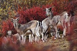 巖羊(學(xué)名:Pseudois nayaur),體型中等,形態(tài)介于野山羊與野綿羊之間。兩性具角,雄羊角粗大似牛角,但僅微向下后上方彎曲。以青草和各種灌叢枝葉為食。冬季啃食枯草。它們還常到固定的地點(diǎn)飲水,但到寒冷季節(jié)也可舔食冰雪。無(wú)固定獸徑和棲息場(chǎng)所。它們?cè)趹已虑捅谥灰幸荒_之棱,便能攀登上去。一跳可達(dá)2、3米,若從高處向下更能縱身一躍10多米而不致摔傷。冬季發(fā)情交配,次年6、7月產(chǎn)仔,每年通常只產(chǎn)1仔。主要天敵是雪豹、豺、狼,以及禿鷲和金雕等大型猛禽。中國(guó)國(guó)家二級(jí)重點(diǎn)保護(hù)野生動(dòng)物。
