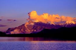 高原是云的故鄉(xiāng)。大團(tuán)大團(tuán)的云朵純粹潔白,掛在天空沉甸甸的,既濃重,又輕柔,如詩,如夢。清晨,云在山峰彌漫,在山谷涌動,近一些的飄在眼前,恍如人在云中;稍遠(yuǎn)些的縈繞在山間,山似夢中仙境。雨雪之后,棉花似的云朵越開越大,瞬間變成了輕柔的白紗,在山間裊裊升起。再之后像雪白的羊群,似奔騰的戰(zhàn)馬,如匆忙的使者,從容飛渡,來去無蹤。