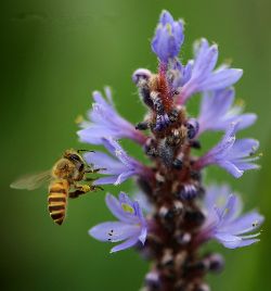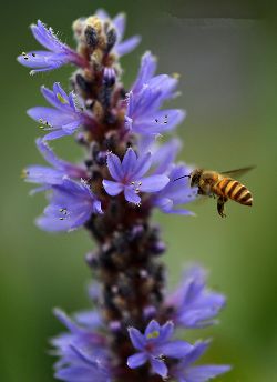 本集展示的,就是中華蜜蜂在白鷺灣濕地一期中秋主打花卉——梭魚草上采花的美景。