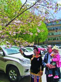 走在康定街頭,到處是瑰麗繽紛,成為街頭靚麗的風(fēng)景線。走過樹下,撩人心扉,偶爾抬頭望望,或許你就能發(fā)現(xiàn)它的俏麗身姿。折多河沿岸,遍植了柳樹,眼睛放開在河的兩岸,都被春意的畫筆輕巧地抹了。輕輕,有如是女兒給眉的描,給唇的畫,給臉龐添的脂粉,很不經(jīng)意,但又那么刻意、認(rèn)真,不由得你心頭不溫婉起來,蕩起暖暖的一種氣息,和了柳梢上輕綠的飄動(dòng),直把那柳做了佳麗等待的那回眸一笑。