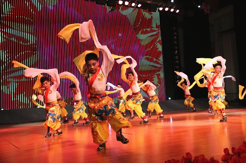 在歡快的音樂(lè)聲中,《師恩如歌》拉開(kāi)了“園丁頌”文藝晚會(huì)的序幕。悠揚(yáng)的歌聲,歡快的舞蹈,熱烈的掌聲,演繹著同一個(gè)主旋律:“老師,是您為我們開(kāi)啟了智慧的大門(mén),加減乘除,算不盡您做出的貢獻(xiàn)!詩(shī)詞歌賦,頌不完對(duì)您的感激!千言萬(wàn)語(yǔ)只能匯成一句話(huà):老師,您辛苦了,我們永遠(yuǎn)感謝您!”晚會(huì)以“園丁頌”為主題,分為“播種希望”、“愛(ài)的光芒”、“九月禮贊”三個(gè)篇章。歌曲《圓夢(mèng)中國(guó)》、情景劇《守望白云》、舞蹈《老師親,媽媽親》等13個(gè)節(jié)目先后上演。一首首膾炙人口的歌曲,唱出了對(duì)人民教師的無(wú)限深情,一個(gè)個(gè)激情昂揚(yáng)的舞蹈,道出了對(duì)人民教師的萬(wàn)般感激。旋律優(yōu)美、歡快熱烈、精彩紛呈的晚會(huì)深深地吸引了現(xiàn)場(chǎng)觀眾的眼球。一聲聲發(fā)自?xún)?nèi)心的問(wèn)候,一句句來(lái)自心靈的祝福,將晚會(huì)一次次推向高潮,晚會(huì)現(xiàn)場(chǎng)掌聲雷動(dòng)、歡呼雀躍,《吉祥祝?!犯栉璞硌轂檎_(tái)晚會(huì)畫(huà)上了一個(gè)圓滿(mǎn)的句號(hào)。