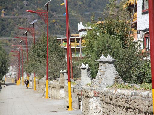 走進(jìn)冬日的丹巴縣革什扎鄉(xiāng)三道橋村,一幅如詩如畫的鄉(xiāng)村美景映入眼簾:一排排新穎別致而獨(dú)具嘉絨特色的白色藏房鑲嵌在彎彎的革什扎河旁,格外耀眼。一條條平直寬敞的硬化路像一根根潔白的哈達(dá)連接家家戶戶,寬敞平坦的公路上,轎車、農(nóng)用車、拖拉機(jī)穿梭來往,別具一格的村民活動中心紅旗迎風(fēng)飄揚(yáng)。 這是如今的三道橋民族團(tuán)結(jié)新村。