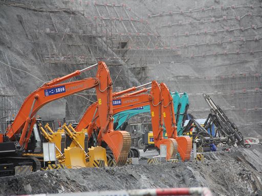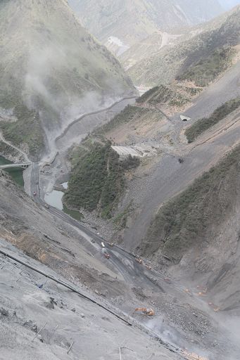兩河口水電站采用土心墻堆石壩,最大壩高達305米,居世界同類壩型前列。樞紐建筑物由礫石土心墻堆石壩、溢洪道、泄洪洞、放空洞、發(fā)電廠房、引水及尾水建筑物等組成。“兩河口大壩采用當?shù)夭牧辖ㄔO,壩高295米,是目前中國已建或在建的第一高土石壩。”雅礱江流域水電開發(fā)有限公司相關負責人介紹說,“國家體育場‘鳥巢’體積約680萬立方米,壩體總填筑量4160萬立方米,相當于6個‘鳥巢’的體積。”