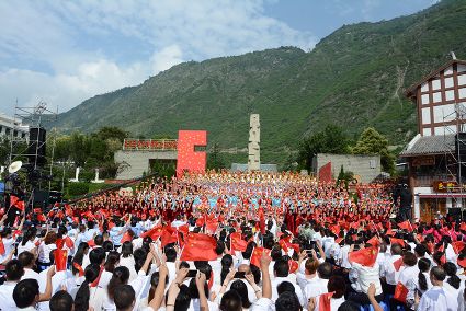 本次歌詠大匯共分為《紅色·記憶》、《天塹·通途》、《和諧·歡歌》三大篇章,現(xiàn)場展演的《七律·長征》、《歌唱二郎山》、《好兒好女好江山》等19個歌舞節(jié)目,全面展示了甘孜光榮的革命歷史、多彩的民俗文化、巨大的發(fā)展變化。