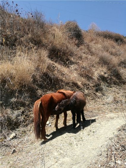 晴天里有陽光,陽光總是充滿愛和溫馨,無論人或是動(dòng)物,母愛都是最寶貴的甘露。行走在阿里布果,無限愜意油然而生,徜徉在陽光的懷抱,心寧而靜。突然,馬鳴聲打破了這份寧?kù)o,一匹黃馬一邊吃著草,一邊吼叫,不一會(huì)兒,一匹小馬駒飛奔而來,走到黃馬身旁,吮吸著甘甜的乳汁。天很藍(lán),陽光很溫暖,世上有一種最美麗的聲音,那便是母親的呼喚。