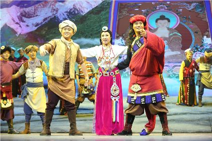 初生的音樂劇《康定情歌》是個聽話謙遜的孩童,專業(yè)人士的諄諄教誨一定會牢記在心;他也是個具有思鄉(xiāng)情結(jié)的游子,自己的一顰一笑都流露出濃郁的民族風(fēng)采;同時他也是個頑強拼搏的逐夢少年,即便汗水和淚水匯成一道道溝壑,依然挺胸不低頭,只為在明天,成為更好的自己。 (圖片由州歌舞團提供)