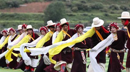 7月29日,來自四川省道孚縣藏族群眾在安巴農(nóng)耕文化旅游節(jié)上。新華社記者江宏景攝