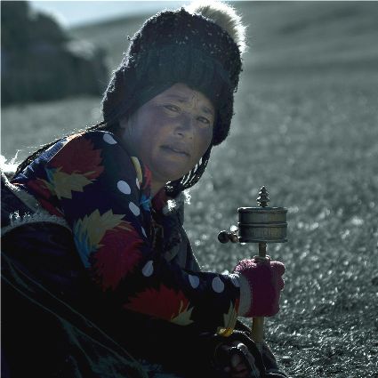 每當(dāng)我手持相機(jī)時(shí),對(duì)他們始終懷有一種敬畏,我捕捉到他們眼神里流露出虔誠(chéng)??粗?jīng)筒上“甲多”的飛轉(zhuǎn),我陶醉了,醉在那轉(zhuǎn)經(jīng)筒的旋轉(zhuǎn)舞動(dòng),醉在那轉(zhuǎn)經(jīng)筒傳誦的故事,醉在那一張張手持轉(zhuǎn)經(jīng)筒的面孔,還有,還有因祈禱音符助推而從未停止的轉(zhuǎn)經(jīng)筒……