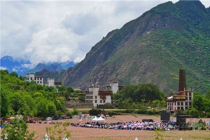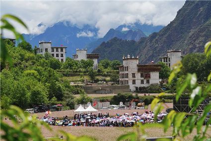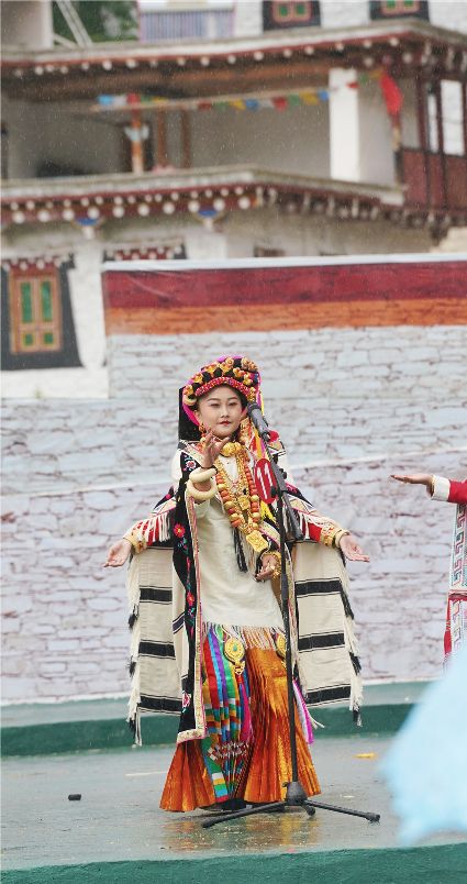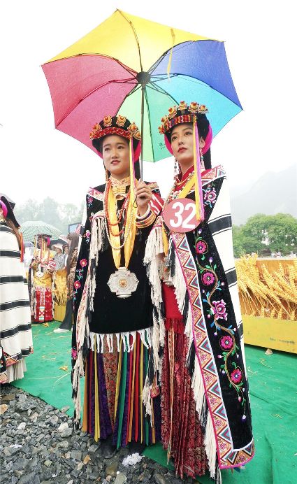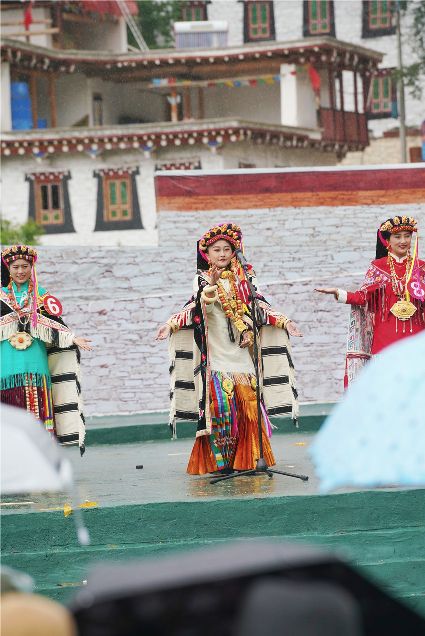比賽開始不久,現(xiàn)場(chǎng)下起了小雨,但絲毫沒(méi)有影響熱烈氣氛。臺(tái)上的佳麗們,略施粉黛,穿著承載著嘉絨風(fēng)情文化的民族盛裝,自我介紹,優(yōu)雅展示。臺(tái)下,則是鄉(xiāng)民齊聚,熱情高漲。大家紛紛到場(chǎng),為佳麗們加油助威。據(jù)介紹,丹巴出美女始于漢代的東女國(guó)時(shí)期。古時(shí)每年農(nóng)作物收獲的時(shí)節(jié),丹巴各村各寨都要舉行盛大的選美和祭祀活動(dòng)。