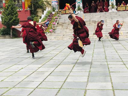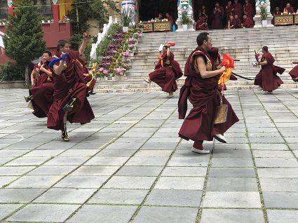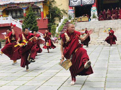 為紀(jì)念釋迦牟尼佛的誕辰(浴佛)日,康定群眾每年農(nóng)歷四月八日都要舉行隆重盛大的紀(jì)念活動(dòng),稱(chēng)“四月八”轉(zhuǎn)山會(huì),南無(wú)寺的跳神活動(dòng)就是其中之一。