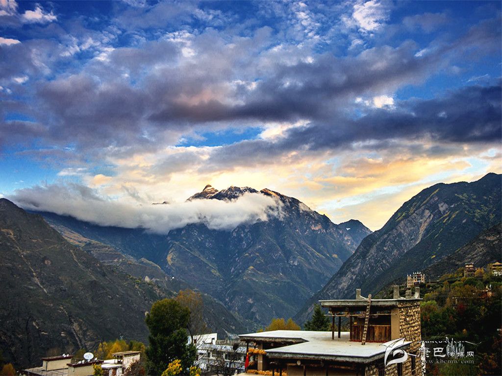 墨爾多山脈起于阿壩州鷓鴣山,如龍盤旋延綿上千里,主峰5000米,在大、小金川匯合處丹巴縣境內(nèi)突兀矗立,高聳入云。西仰猶如一尊巨佛乘騎一頭猛獅奔馳,從西南而望,好似一個(gè)藍(lán)色寶瓶橫空擺放南望則見四季煙云,峰巒魔變。呈佛經(jīng)所載的須彌山景。