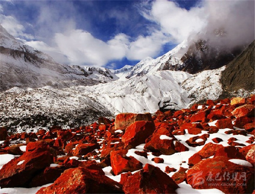 在積雪厚厚的遮掩之下,紅石灘永遠是震撼人心的風(fēng)景。在綿延數(shù)十公里的河谷中,在茫茫的積雪下,紅石絲毫不甘寂寞,處處顯露出它們火一般的色彩來,在藍天的映襯下更加鮮艷奪目,這般壯美的景象讓毛能之恍如走進另一個星球。