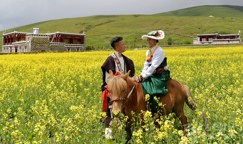 盛夏的甘孜,氣候宜人,花團(tuán)錦簇,溪水潺潺,牧歌悠揚(yáng),美不勝收。自駕游、組團(tuán)游、騎游,15.3萬(wàn)平方公里的甘孜大地上,隨處可見(jiàn)操著不同口音的游客,大美甘孜醉了天下人。