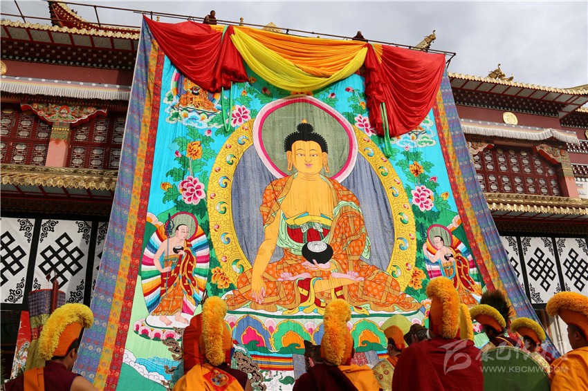 一大早,寺廟僧人身穿節(jié)日的盛裝,在莊嚴(yán)的鼓樂(lè)聲和誦經(jīng)聲中,僧眾們與廣大群眾仰望佛像,隨著黃綾的徐徐拉開(kāi),氣勢(shì)恢宏的巨幅佛像展現(xiàn)在眾人面前,預(yù)示人們平安吉祥,風(fēng)調(diào)雨順,安康幸福。