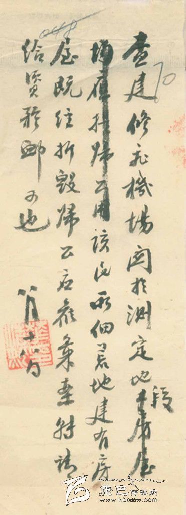 當(dāng)年國(guó)民黨一支中央軍在康定南郊修建了飛機(jī)場(chǎng),其地址就在如今煙草公司到軍分區(qū)那一帶。這是個(gè)從來(lái)沒(méi)有發(fā)揮過(guò)作用的飛機(jī)場(chǎng),過(guò)去一直以為那地方完全是荒蕪的河灘地,通過(guò)這份由一位名叫王有才的菜農(nóng)在1935年呈給縣長(zhǎng)的“懇狀”,可以看出那地方其實(shí)也有可以種植出小菜的熟地。