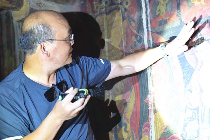 本網(wǎng)訊(記者 唐闖 文/圖)8月2日, 在我州石渠縣真達鄉(xiāng)嘛達村嘛達寺一座長期封閉的護法殿內(nèi),故宮博物院藏傳佛教文物研究所所長、研究員羅文華率領的團隊發(fā)現(xiàn)相當完整的明代藏傳佛教壁畫和泥塑雕像,這是迄今為止石渠縣境內(nèi)發(fā)現(xiàn)的最為重要的藏傳佛教遺存之一,此次發(fā)現(xiàn)填補了藏傳佛教研究的多項空白。