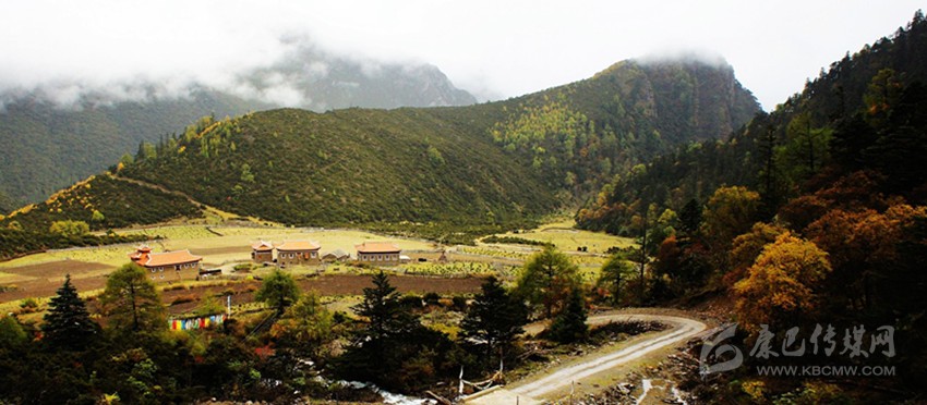 街道兩旁是我熟悉的土墻木瓦的藏房,曠野里到處可見的是青稞及干草架,散落在草色枯黃牧場里潔白的羊群,像繡在一塊沾了污漬黃布上的星星,也有亮閃的光。