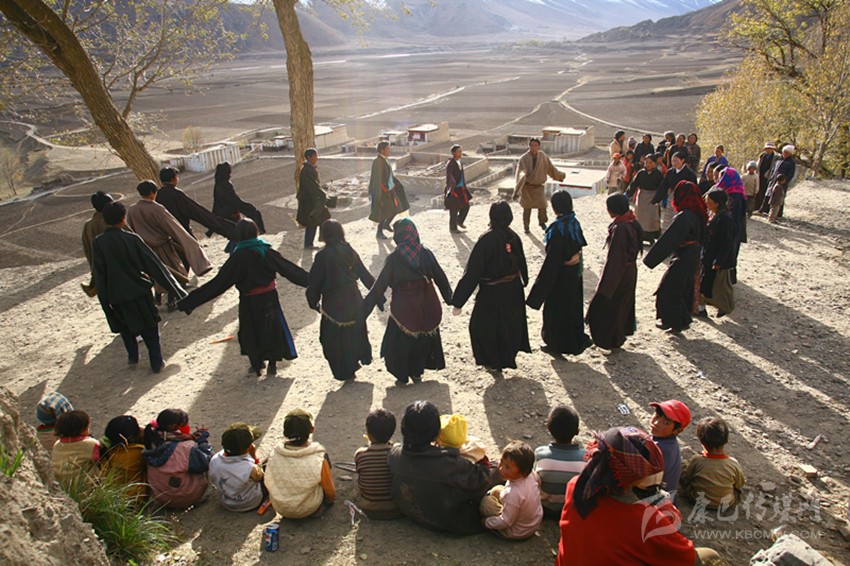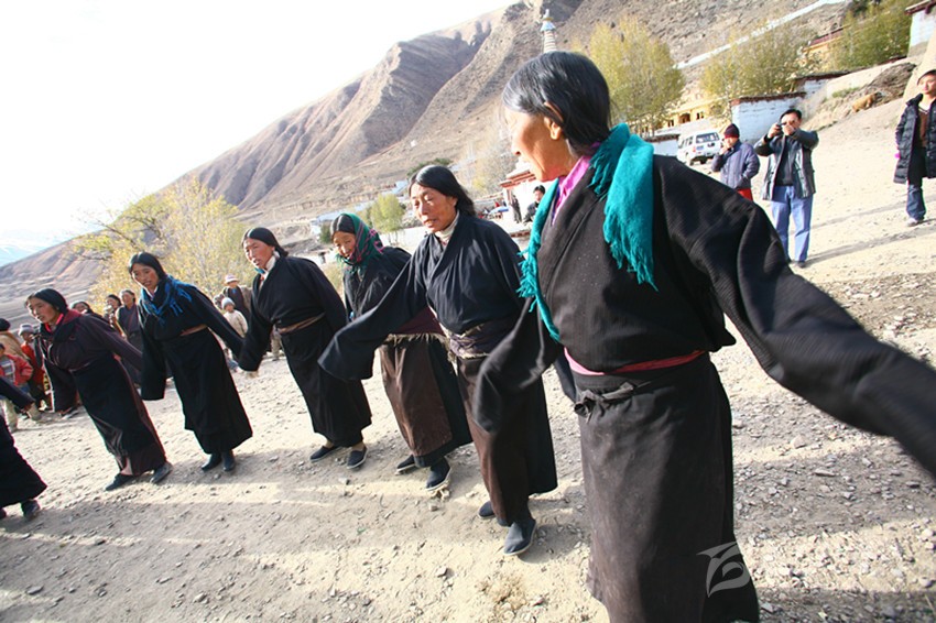弦子又名為“協(xié)”,在甘孜縣境內有孔薩協(xié)欽、仲薩協(xié)、格達協(xié)、郎扎協(xié)等,其中白利寺五世格達活佛創(chuàng)建于二十世紀三、四十年代的格達弦子尤為著名,跳此舞無時間規(guī)定。起初用此歌祭祀亡魂、超度靈魂、免荒災。以后逐漸豐富其內容而流傳于民間。表演時無伴奏樂器,起舞時,男女兩隊輪歌共舞,圍成圓圈,相對而立,男女舞者統(tǒng)一著樸素藏裝,男舞者抬頭,頭戴金氈帽, 身著“氆氌”衣,但不配戴腰刀;女舞者低頭,扎小辮子,身著“氆氌”衣,腳穿藏鞋,沿著弧線,先慢后快,邊歌邊舞,舞蹈的腳步動作矯健,帶有“夏卓”的風韻。格達活佛的詩歌,具有藏族文學的新內容和新思想,每當節(jié)日人們就在優(yōu)美的旋律中盡情起舞,格達弦子的詞、曲均由格達活佛創(chuàng)作。