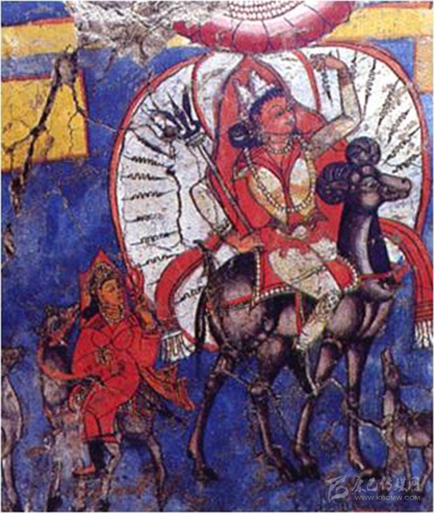 《騎羊女神》托林寺壁畫局部(公元十一世紀(jì))。