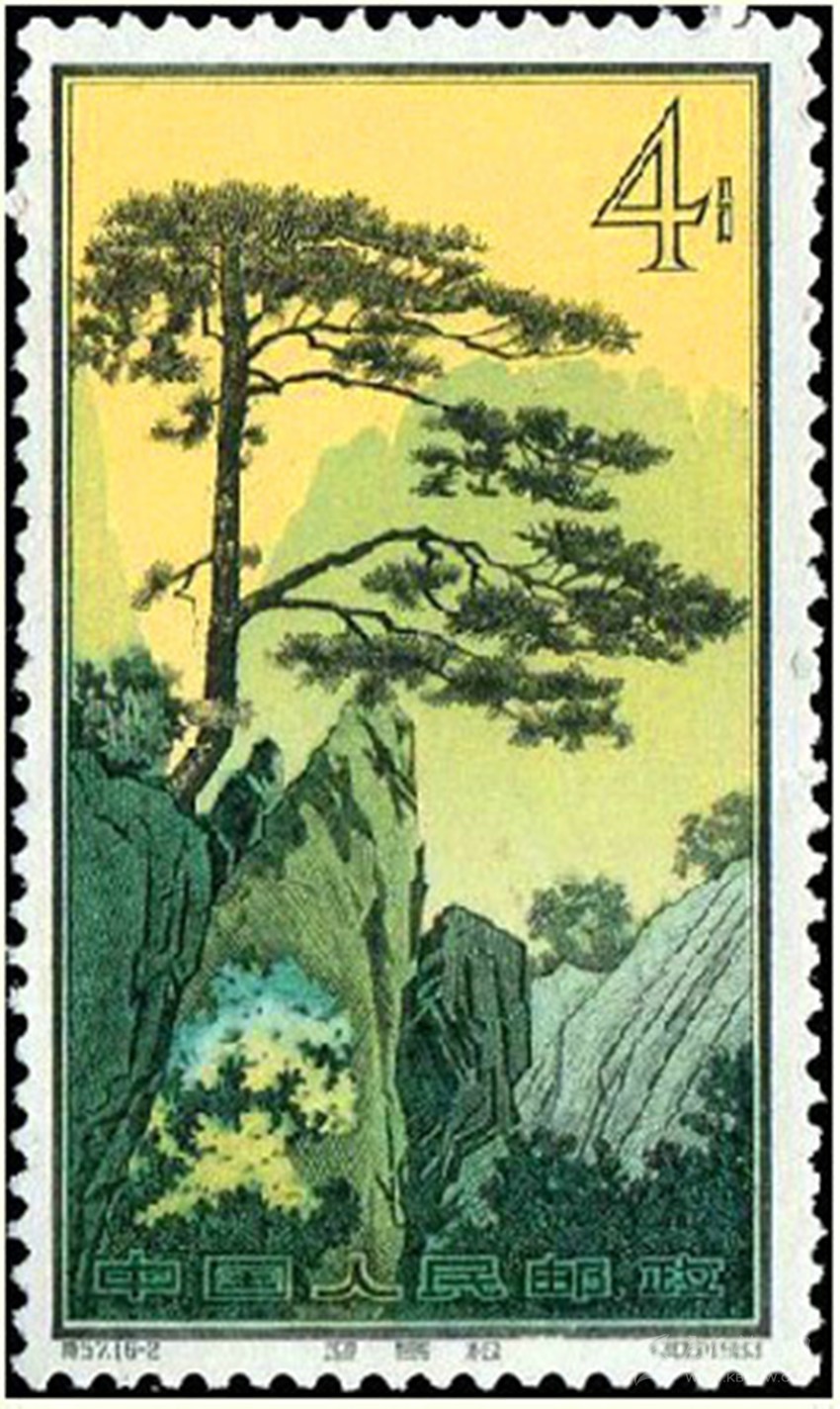 1963年發(fā)行的《黃山風景》特種郵票(16-2)“迎客松”。