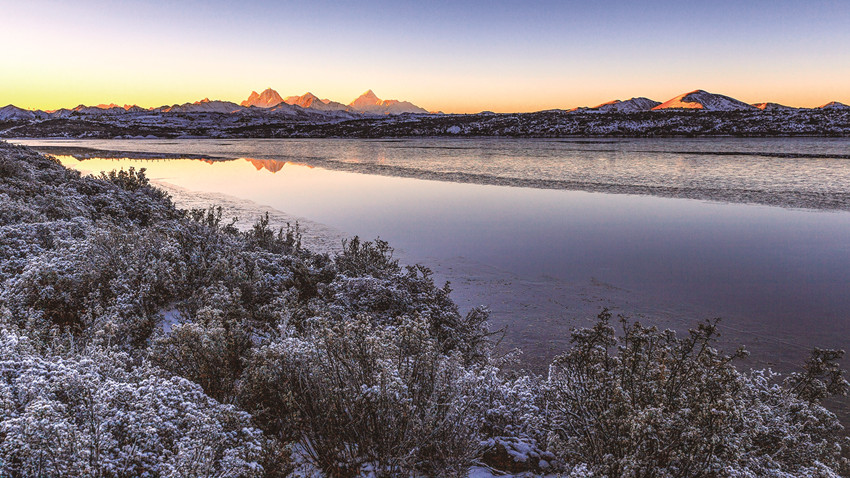 這是天上貢嘎寬大為懷、兼容并包的不凡氣度。它以獨(dú)具魅力和氣吞山河的雄偉壯麗,以及無(wú)法憾動(dòng)的王者之軀,包容并呵護(hù)著無(wú)數(shù)群峰、千溝萬(wàn)壑、萬(wàn)物生靈和諧共生共處,展現(xiàn)出一幕幕眾山拱衛(wèi)下精致的山岳大戲。如此這般,既把自身推向了高點(diǎn),又使依偎在身邊甚至遠(yuǎn)處的萬(wàn)物生靈各得其所、各展其長(zhǎng)、各有所獲。
