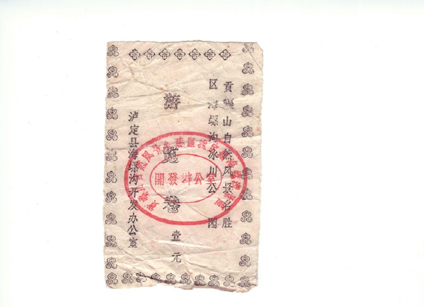 我有心收藏海螺溝旅游開發(fā)建設三十年來不同時期、品相各異的門卷、門票數(shù)枚。門卷、門票是游客進入景區(qū)的憑證,也是景區(qū)的“臉面”。在我收藏的門卷、門票中有一枚海螺溝景區(qū)第一代門卷。構圖簡單,白底黑字的第一代門卷,雖然在歲月中褪去了鮮色,但在方寸之間卻承載著海螺溝景區(qū)建設最初的時光和開發(fā)建設者的記憶,更是瀘定縣三十年前發(fā)展旅游的歷史見證。一晃三十年光陰,至今我對海螺溝景區(qū)第一代門卷的來歷,還記憶猶新。
