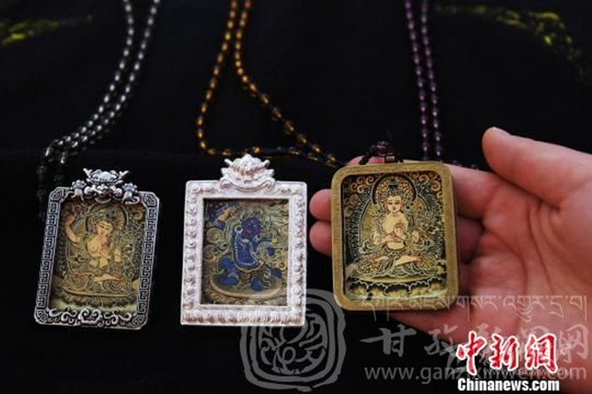 張馨藝說,微型唐卡完成后,經精美銀盒裝飾后,不僅可以佩戴于身上,還可以掛在家中、汽車里,有保平安的意思。相對于巨幅唐卡,價格更容易被民眾接受,也有收藏的價值。