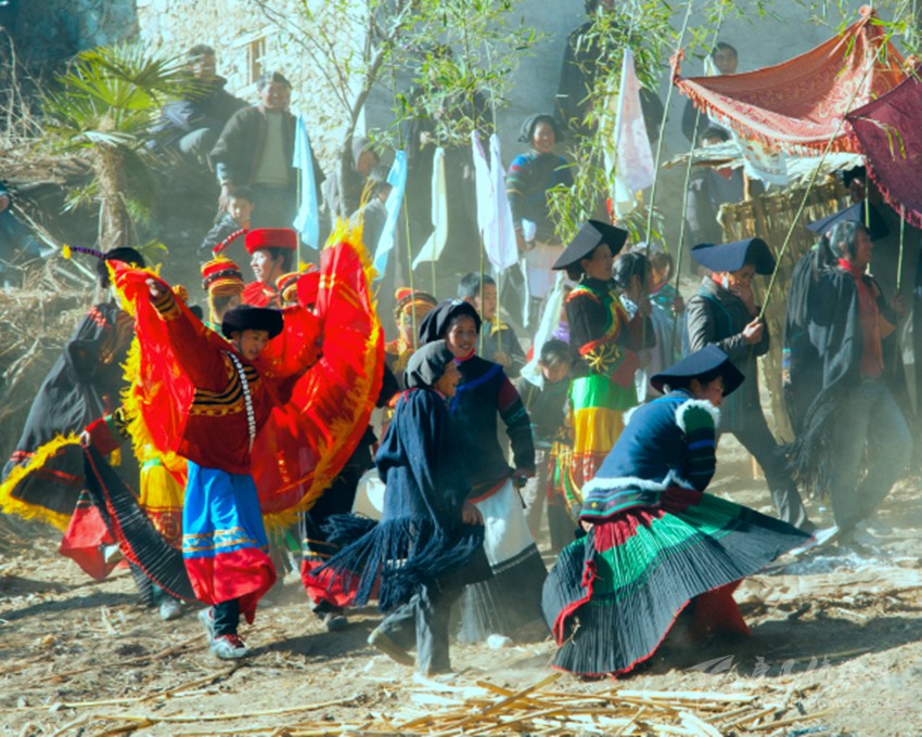 去年春節(jié)前夕,我就要和戀愛已久的尼坡烏各莫結(jié)婚了。這天,天朗氣清,喜鵲喳喳。爛堡子的親戚們來了,陰山隊的朋友們來了,體壯彪悍的小伙們來了,身著彩裙、婀娜多姿的姑娘們來了。于是在我家屋里門外到處都是親朋好友。他們有的在殺豬宰羊,準(zhǔn)備婚慶上的喜宴,有的幫著打掃房前門后的灰塵,有的在抽煙喝酒……總之,整個小小的山寨充滿著濃濃的喜慶氣氛。我喜滋滋、樂呵呵,帶著抑制不住的喜悅對客人們又是招呼又是斟酒倒茶。