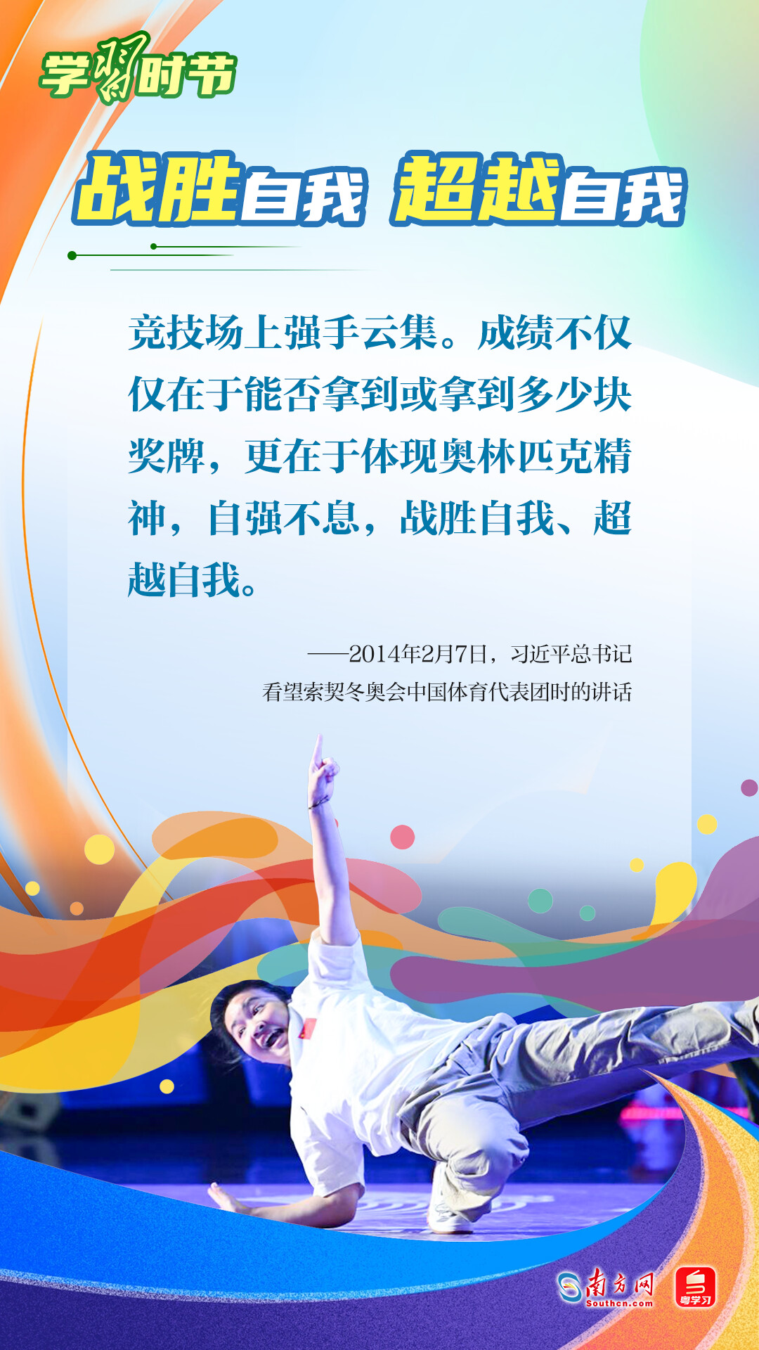 “我們不以勝負(fù)論英雄,同時英雄就要敢于爭先、敢于爭第一。”習(xí)近平總書記曾在不同場合論述奧林匹克精神,深刻闡明了勝與負(fù)、成與敗的辯證關(guān)系,對奧林匹克“更快、更高、更強(qiáng)——更團(tuán)結(jié)”的格言進(jìn)行詮釋。讓我們一同學(xué)習(xí)習(xí)近平總書記對奧林匹克精神的重要論述,心懷夢想、奮勇拼搏,攜手走向美好明天。