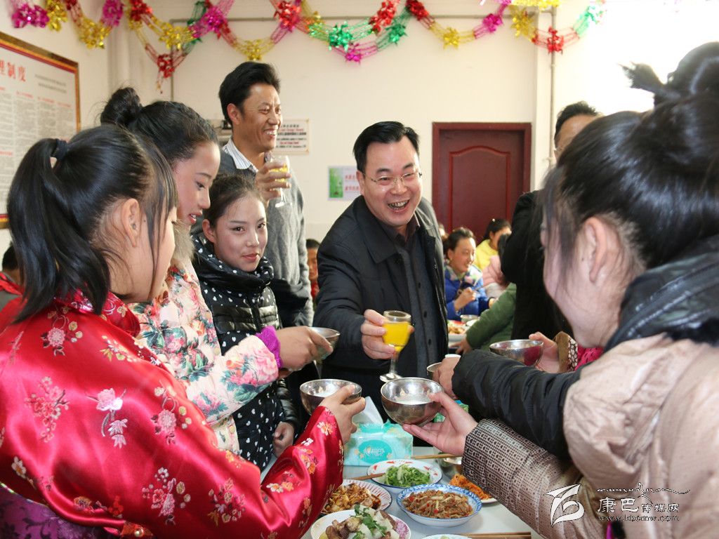 “現(xiàn)在我們共同舉杯,祝愿我們的老師們家庭幸福,祝愿孩子們學(xué)習(xí)進步,健康成長,新年有新成就,扎西德勒。干杯!”胡昌升以茶代酒,祝福大家春節(jié)愉快、萬事如意。