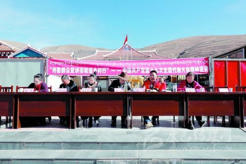 “能代表州委向干部群眾宣講黨的十九大精神,我們深感肩上的責(zé)任重大,大家一定要結(jié)合自己所承擔(dān)的宣講任務(wù),把十九大精神生動地解讀給農(nóng)牧民群眾?!睘榱俗屝v有實(shí)效、起作用,州委宣講團(tuán)第三組組長謝敏在大家奔赴宣講第一線前十分鐘,還在做動員。