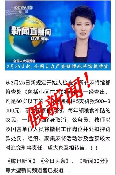 據(jù)介紹,“25日起全國嚴(yán)查棋牌室”的謠言最早出現(xiàn)在2014年,在此后幾年中,這條謠言改頭換面又反復(fù)出現(xiàn),而且出現(xiàn)的時(shí)間也有了規(guī)律,比如每年的5月1日(勞動(dòng)節(jié)長(zhǎng)假)前、9月1日(開學(xué))前、10月1日(國慶長(zhǎng)假)前等。