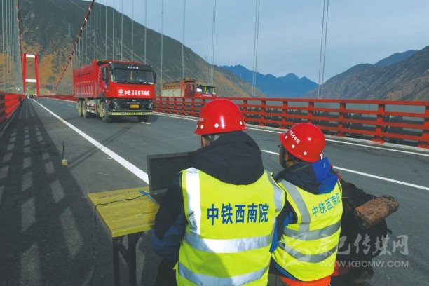 在正式通行之前,最重要的就是對大橋“體檢”。“體檢”由中國中鐵科研院西南院技術(shù)團隊負責。西南院副總經(jīng)理張三峰說:“荷載試驗分為3天的靜載試驗和一天的動載試驗,判斷橋梁承載能力是否符合設(shè)計要求和相關(guān)規(guī)范要求,確定工程的可靠性,為今后長期健康監(jiān)測提供初始數(shù)據(jù),同時為日后養(yǎng)護、管理決策提供支持?!?/p>