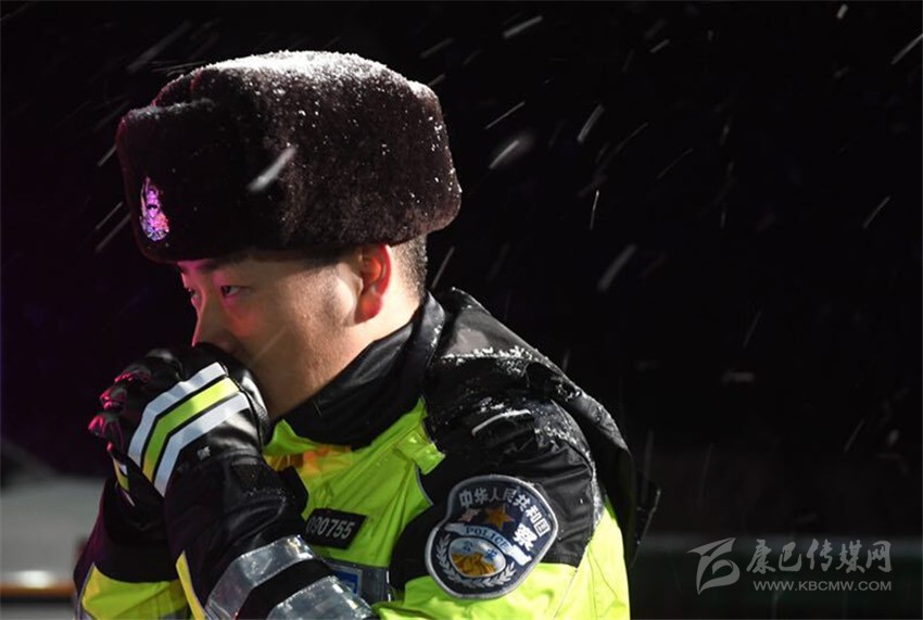圖為民警幫助掛防滑鏈
