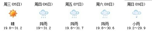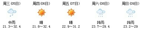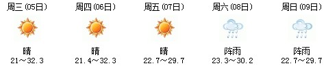 雖然明天太陽(yáng)有點(diǎn)兇,但7日、8日、9日三天陣雨及時(shí)出現(xiàn),日最高氣溫穩(wěn)定在30℃附近。