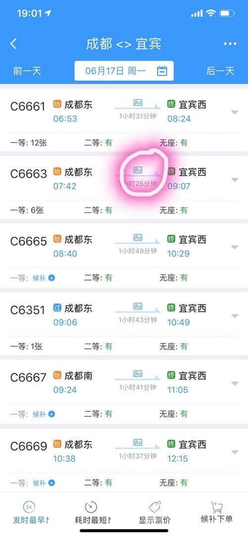 四川在線消息(記者 王眉靈)成貴鐵路樂宜段開通在即,今天(6月15日)下午19點,記者登陸12306網(wǎng)站發(fā)現(xiàn),成都到宜賓動車信息顯示,可以刷身份證上車。隨后,記者從中國鐵路成都局集團公司得到證實,今天4個新建車站全部開通電子客票功能,并成功進行了試票測試。