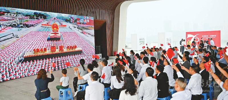上午10時,慶祝中華人民共和國成立70周年大會開始。通過電視信號,大會盛況傳遞至每個現(xiàn)場?!芭c祖國母親同在,祝福祖國繁榮昌盛?!边@是大家共同的心聲?!醣緢笥浾?林凌 何勤華 程文雯 徐中成 陳碧紅 文莎