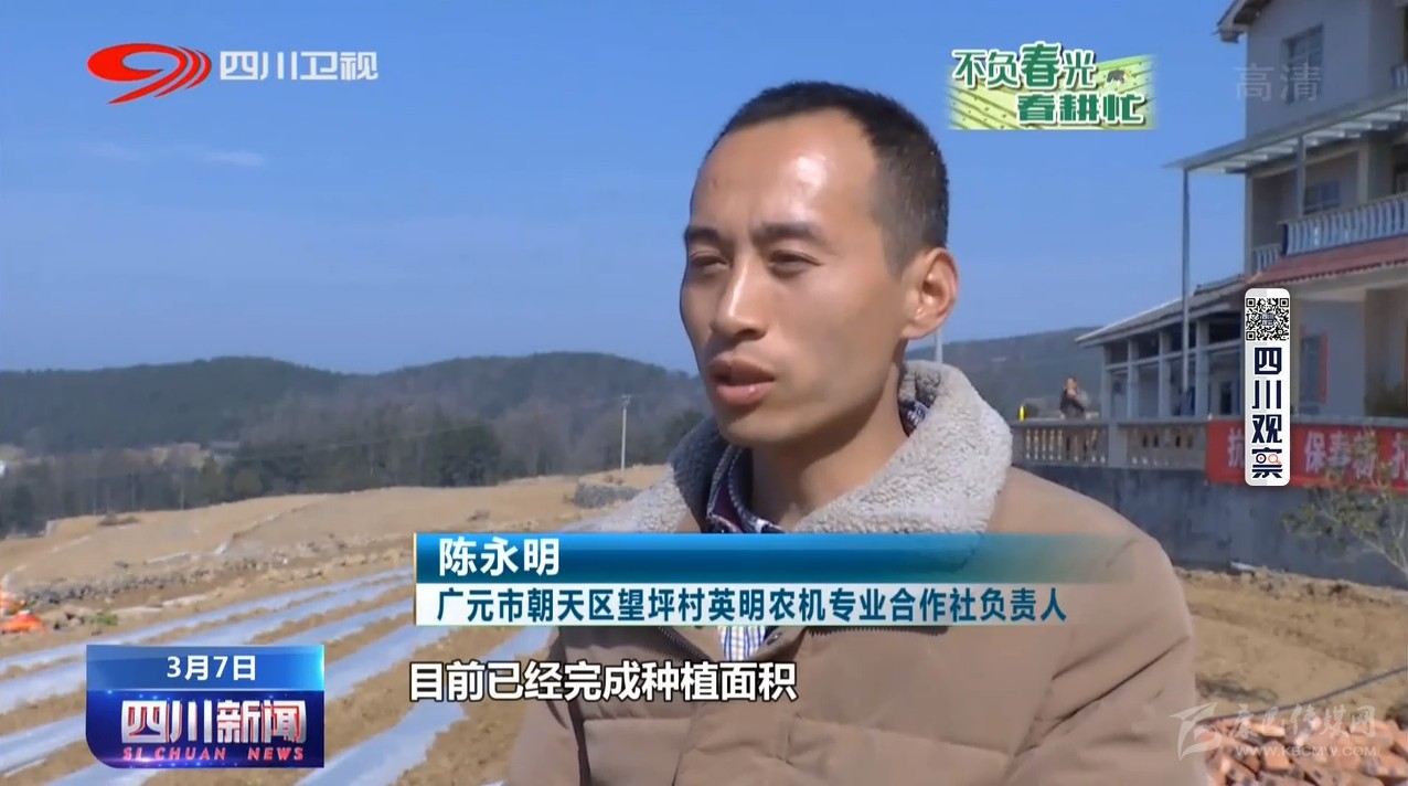 廣元市朝天區(qū)望坪村英明農(nóng)機專業(yè)合作社負責人陳永明:目前已經(jīng)完成種植面積有三四十畝,大量投入機器播種,300多畝地五六天就能完成。