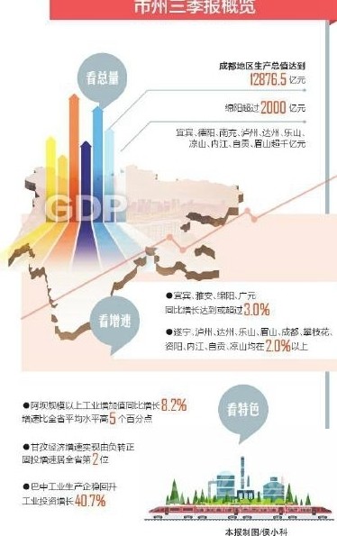 從增速看,宜賓、雅安、綿陽、廣元4市增速“破3”,宜賓達到3.3%;上半年一度負增長的4個市州也全面扭轉下滑勢頭,前三季度增速全部轉正。