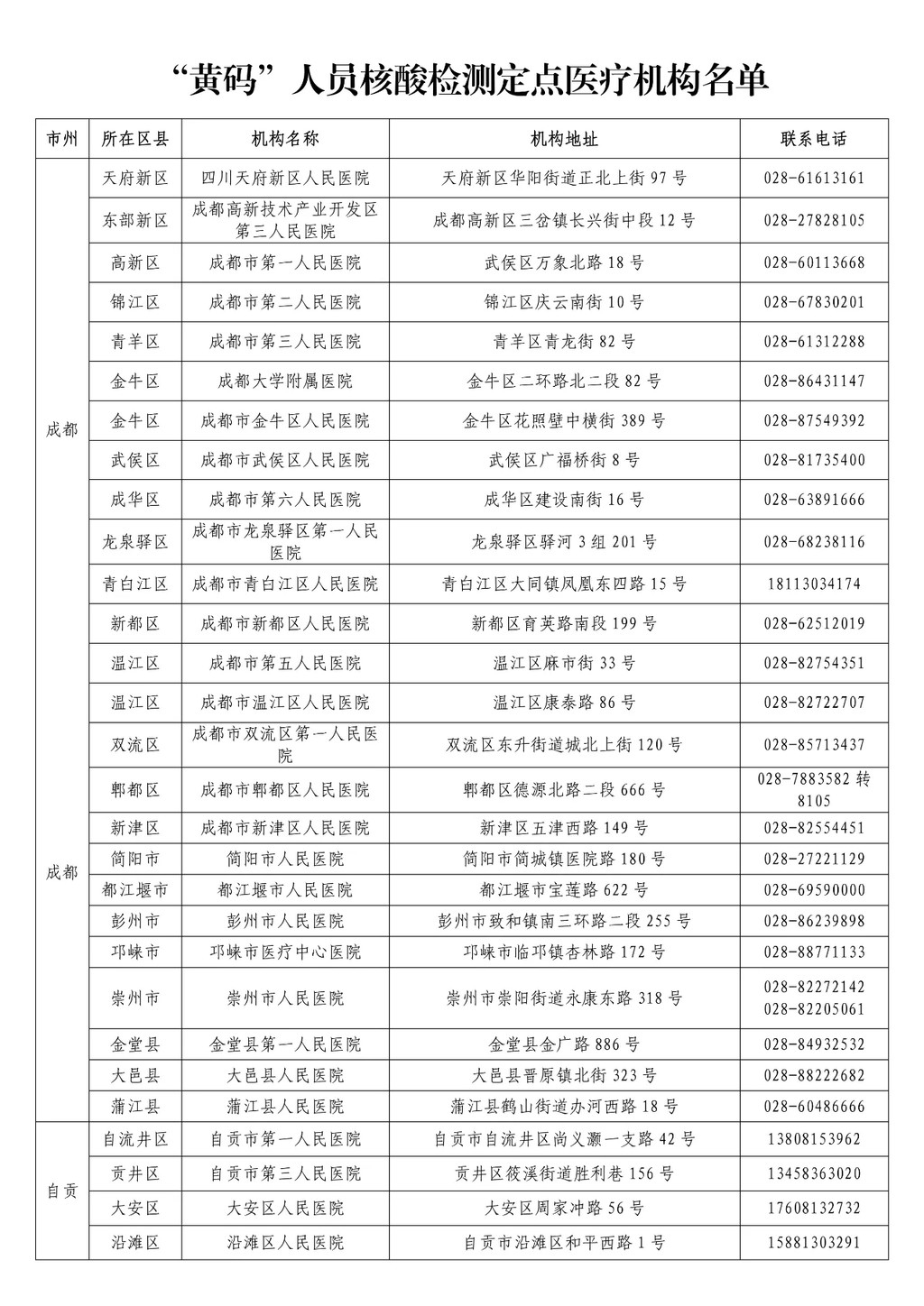 1. “黃碼”人員核酸檢測(cè)定點(diǎn)醫(yī)療機(jī)構(gòu)名單