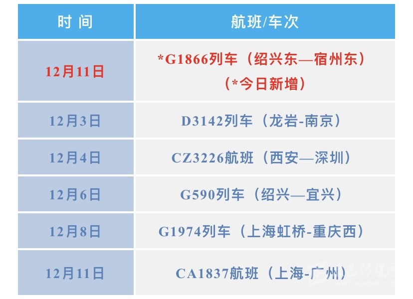 搭乘過(guò)以下交通工具的來(lái)(返)川人員,第一時(shí)間主動(dòng)向社區(qū)或居(村)委會(huì)、單位或入住酒店報(bào)備旅居史,配合做好相關(guān)防控工作。