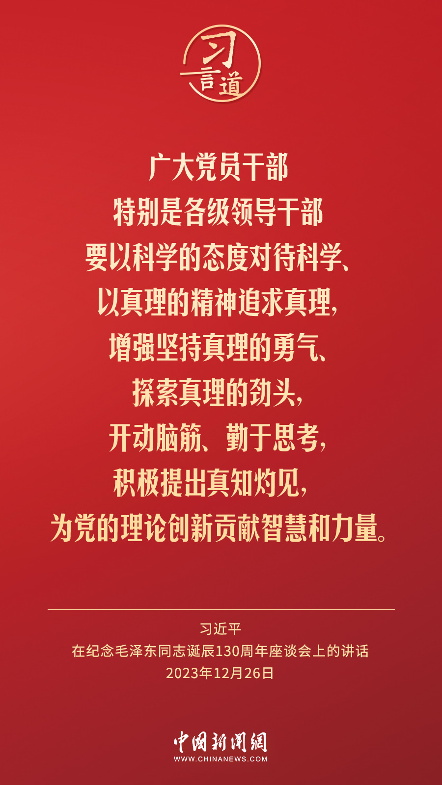 中共中央26日上午在人民大會(huì)堂舉行座談會(huì),紀(jì)念毛澤東同志誕辰130周年。中共中央總書(shū)記、國(guó)家主席、中央軍委主席習(xí)近平發(fā)表重要講話。習(xí)近平指出——