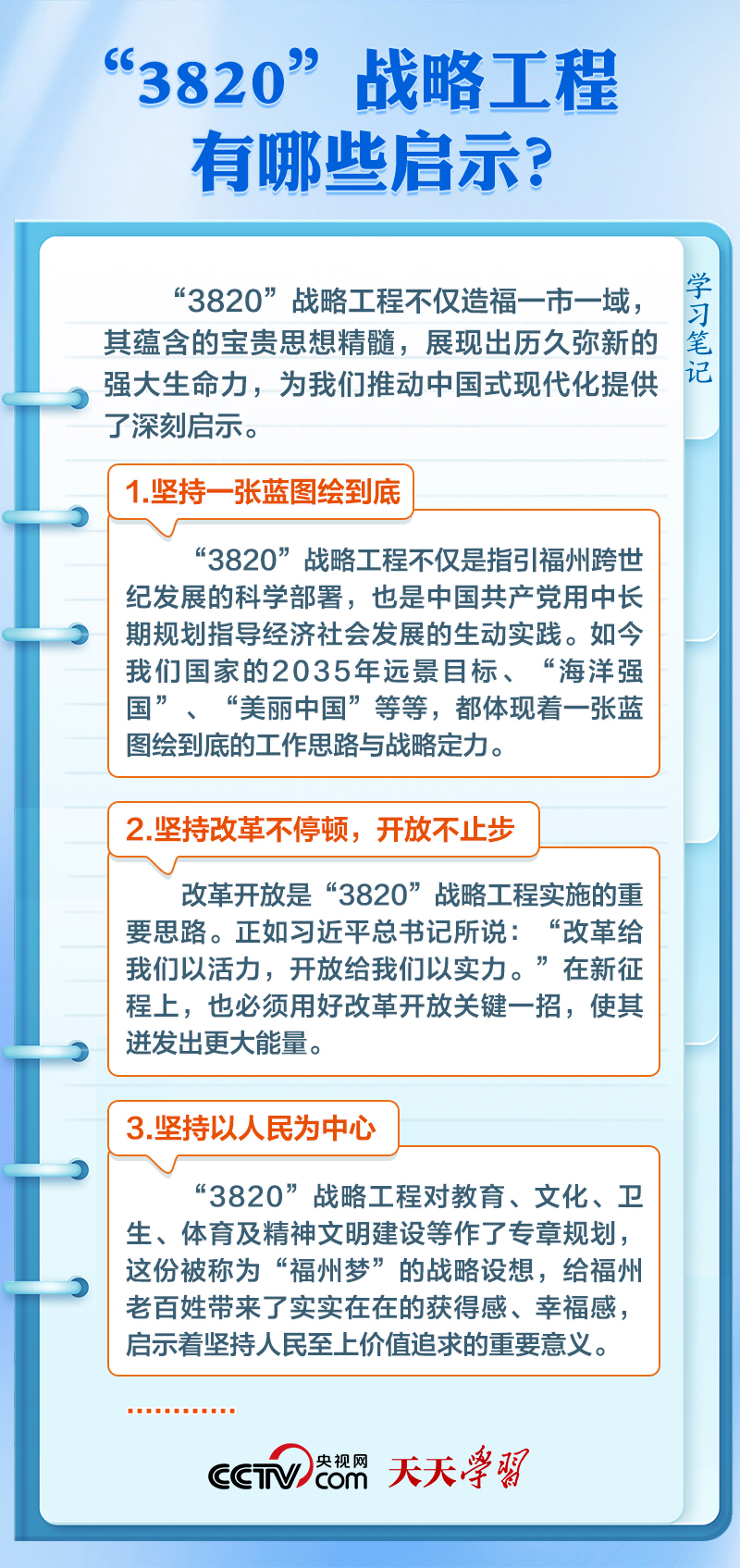 天天學(xué)習(xí)上世紀90年代,習(xí)近平在福州工作期間,親自主持編制了《福州市20年經(jīng)濟社會發(fā)展戰(zhàn)略設(shè)想》(簡稱“3820”戰(zhàn)略工程),系統(tǒng)謀劃了福州3年、8年、20年經(jīng)濟社會發(fā)展的目標、步驟、布局、重點等,為福州擘畫了美好藍圖,確立了總綱領(lǐng)、總方略。