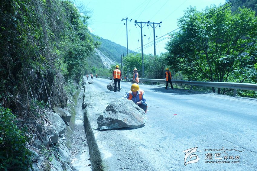 養(yǎng)護(hù)職工正在清除震后零星飛石。