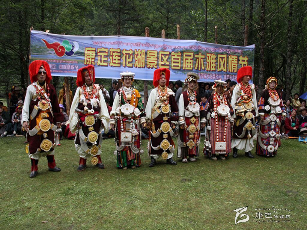 8月19日至20日,普沙絨鄉(xiāng)境內的蓮花湖景區(qū),農牧民群眾身著節(jié)日的盛裝,在仙景般的景致中翩翩起舞。一場場精彩的文藝演出、篝火晚會和民族服飾表演,讓游客如癡如醉,讓攝影“發(fā)燒友”連聲道絕:“蓮花湖美景名不虛傳,木雅風情別具一格,民族歌舞表演更是極具特色。呼吸自然清新的空氣,領略如詩如畫的風景,觀賞原汁原味的民族歌舞,品味色彩繽紛的民族服飾,讓人心曠神怡大飽眼福,讓人情不自禁地按動著相機的快門。簡陋的舞臺、‘草根’的表演雖難登大雅之堂,但絕佳風景中的人與物、歌與舞、景與情的確讓人陶醉著迷。木雅文化之旅且苦且累,但我們卻始終興奮并快樂著。”