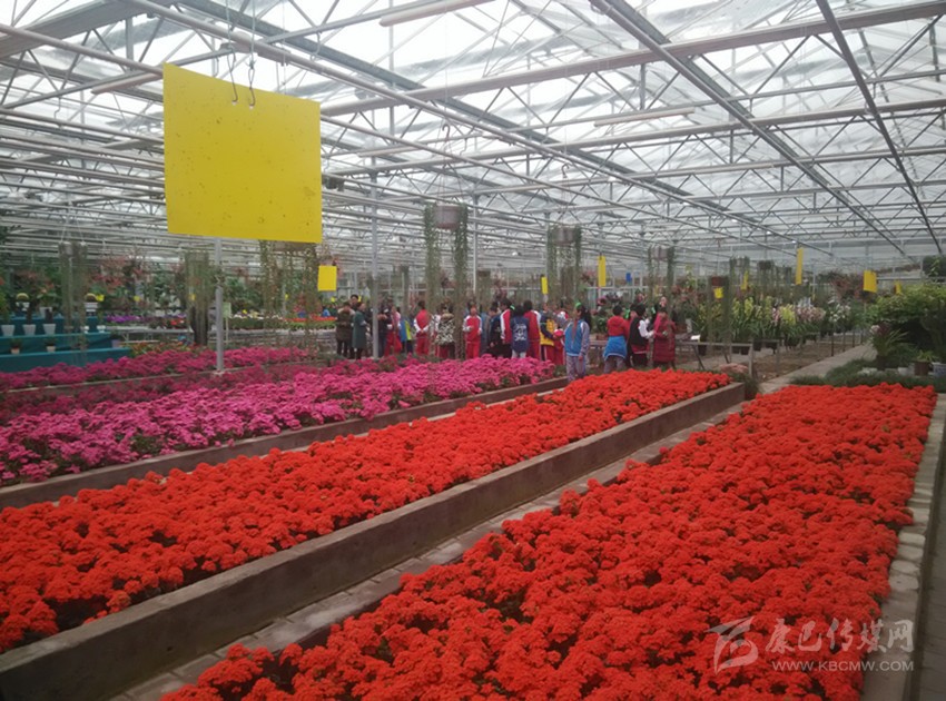 考察團(tuán)坐上觀光電瓶車(chē),穿行在產(chǎn)業(yè)園內(nèi)3000余畝的百合及各種花卉中間,香氣宜人,流連忘返;走進(jìn)單棟面積達(dá)10000平米的14個(gè)連棟智能溫室花卉大棚,妖艷的水仙,高挑的百合,艷麗的百合,白色的、黃色的、紅色的、粉色的,讓人眼花繚亂,置身于花海中的你,一年四季都有花看、有花賞。
