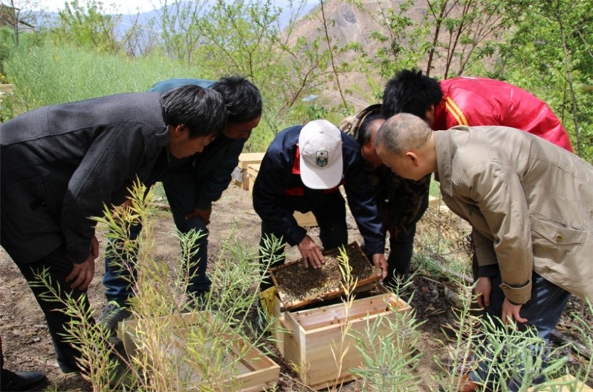 技術(shù)人員指導(dǎo)村民養(yǎng)殖貢嘎中蜂。